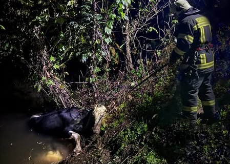 А от виклик із с. Касперівці Заліщицької громади був іншої категорії складності. До Служби порятунку звернулися місцеві жителі: у річку Серет упала корова, яку власники не могли витягнути самостійно.