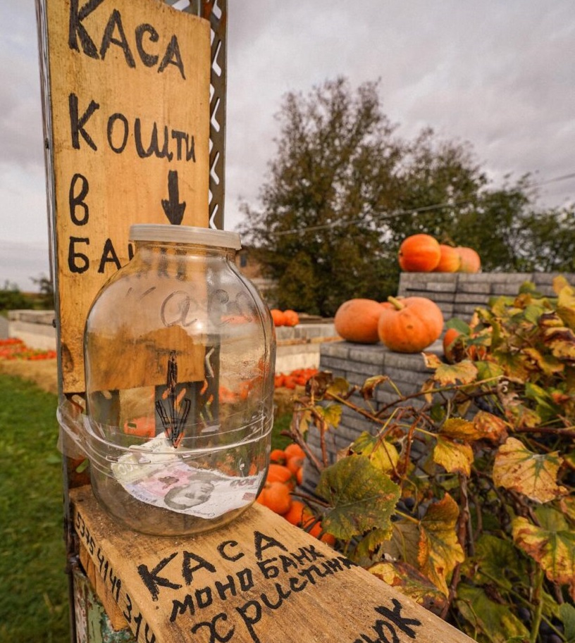 Ціни намальовані безпосередньо на гарбузах. Усі, хто бажає придбати товар, мають покласти гроші до трилітрової банки. Тут також можна зробити гарні фото на спеціально облаштованих фотозонах.