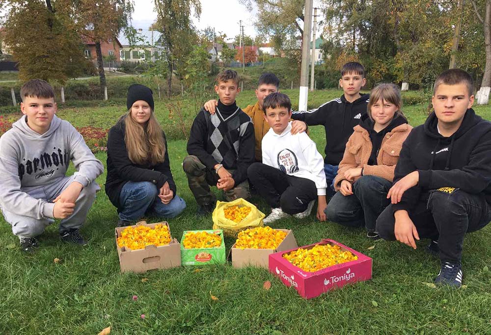 Учні 8-9 класів Угринівської гімназії Підгаєцької громади зібрали з пришкільної ділянки цвіт чорнобривців на чай для захисників. Зібраний цвіт передано волонтерам і патріотам Підгаєцького «Вітамінного Бункеру С». Одна з його засновниць, лікарка за професією Оксана Голуб добре знається на користі цих квітів.