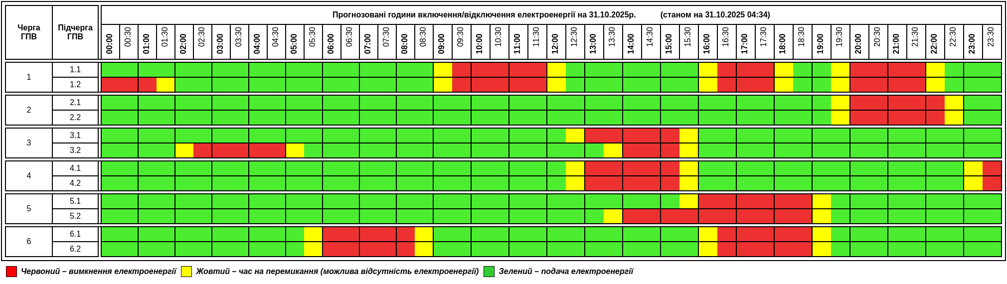 Відповідно до вказівки Національної енергетичної компанії «Укренерго» 31 жовтня на території Тернопільської області діятимуть Графіки погодинних відключень (ГПВ). АТ «Тернопільобленерго» повідомляє, що графіки протягом доби можуть змінюватися.