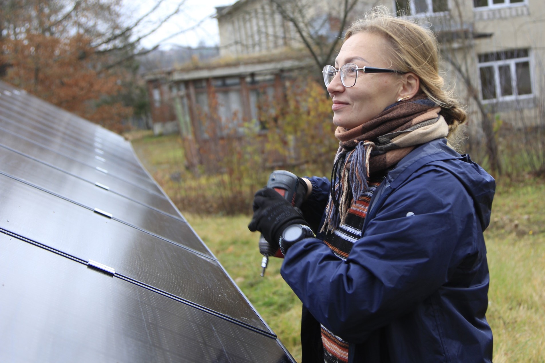 Жінки-переселенки у Чорткові першими в Україні змонтували муніципальні сонячні станції