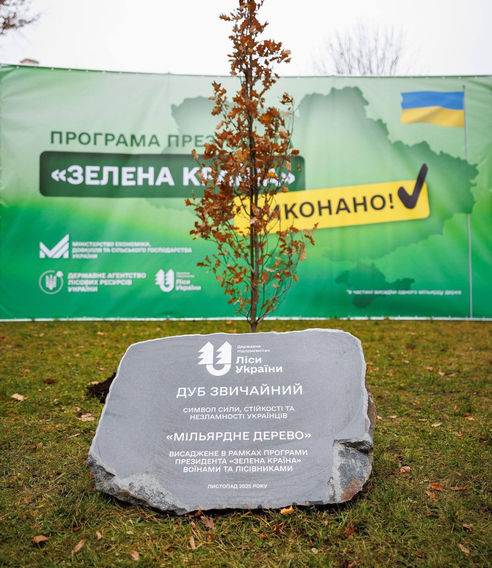 Висадка символічного «мільярдного дерева» відбулася на території Центрального військового шпиталю в Києві. Програма «Зелена країна» стартувала у червні 2021 року. Указ про її старт підписав Президент Володимир Зеленський під час форуму «Україна 30.Екологія».