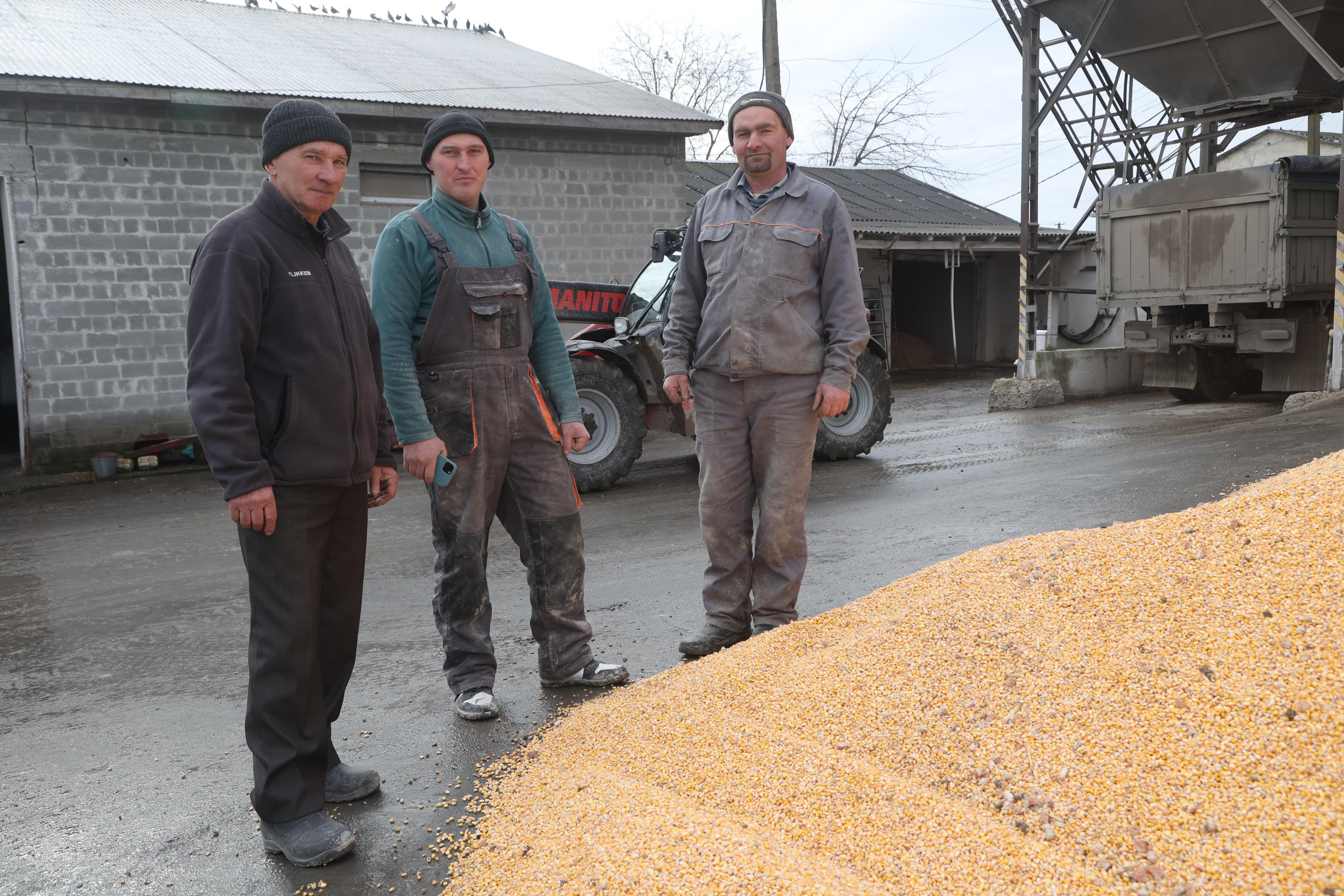На світлинах: керівник ТзОВ «Славутич» Борислав Микитович Довгаль; головний агроном ТзОВ «Славутич» Андрій Ладюк; комбайнери Володимир Горошко і  Віталій Гой; на тоці (зліва направо) - водій КамАЗа Леонід Климчук та оператори сушіння зерна Олександр Констянтинов і Ярослав Мацюк.