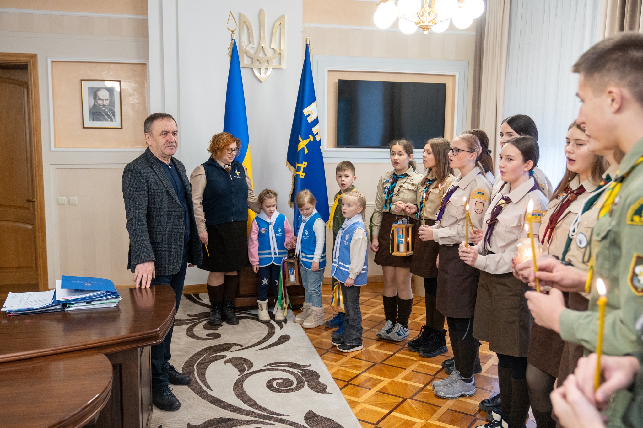 «Дякую тернопільським пластунам, особливо найменшим – «пташатам», за цей вогонь, який несе в собі світло і тепло. Про це  ми зараз мріємо особливо, бо саме сьогодні їх нам так часто не вистачає… Ви показуєте приклад патріотизму, мужності та національної свідомості і молодшим, і старшим поколінням українців. І несете не лише вогонь миру, а й образ сучасного і майбутнього України», - наголосив начальник обласної військової адміністрації, коли приймав Вифлеємський вогонь Миру.