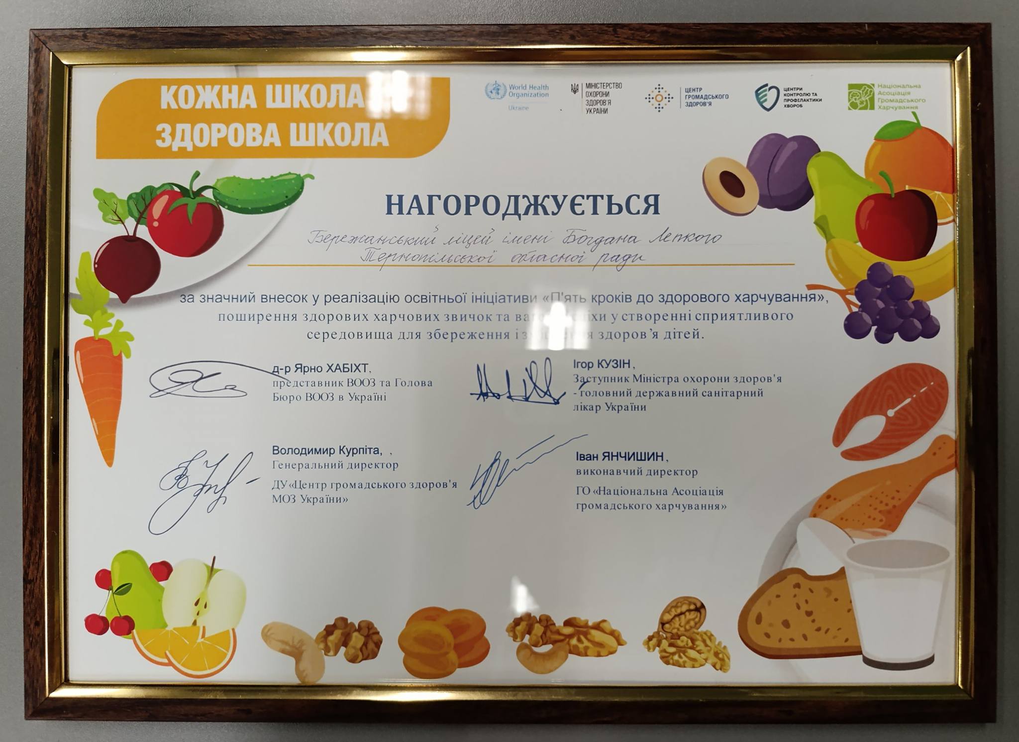 Команда «Віта» Бережанського ліцею Тернопільської обласної ради - Berezhany lyceum імені Богдана Лепкого - виступила з презентацією «Особливості вирощування мікрозелені для п'яти кроків здорового харчування» на обласному конкурсі «П'ять кроків здорового харчування».