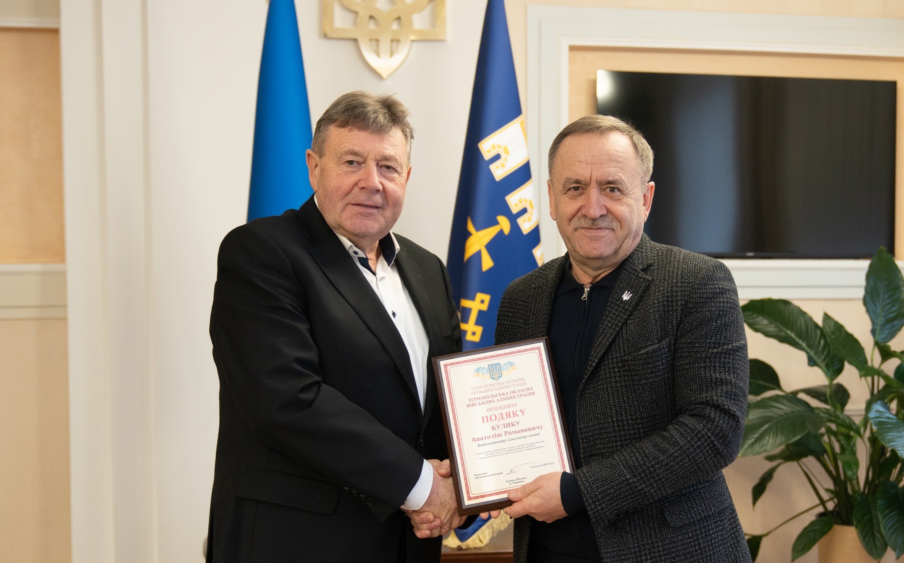 Напередодні Нового року з керівництвом Байковецької сільської ради та Анатолієм Куликом зустрівся начальник Тернопільської ОВА В’ячеслав Негода, щоб подякувати за роботу, яку Анатолій Романович виконував на посаді голови Байковецької ТГ.