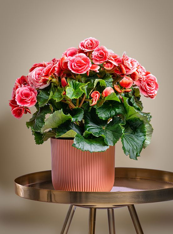 Це універсальні сукуленти, що походять з тропічного та субтропічного клімату. Вони бувають широкого спектру кольорів та форм, деякі сорти відомі своїм цвітінням цілий рік. Завдяки безперервному цвітінню, воскові бегонії та бегонії Рігера особливо популярні для вирощування в приміщенні. Відтінки включають рожевий, жовтий, червоний, абрикосовий та білий. Вони добре ростуть при яскравому, непрямому світлі та потребують легкої вологості, але не перезволоження. Вони ідеально підходять для полиць, підвісних кошиків або стільниць. Бегонії також цінуються за своє яскраве, асиметричне листя, яке додає кольору будь-якій кімнаті.