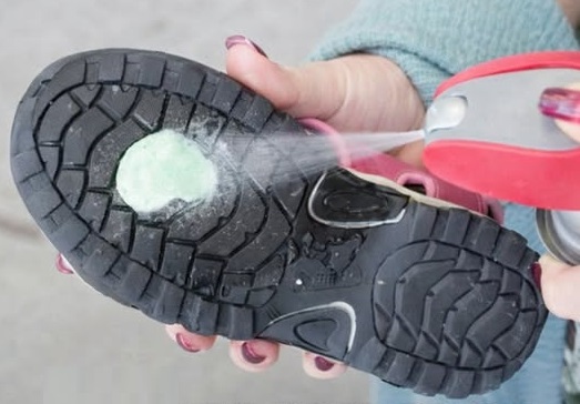 Для цього вам знадобляться наждачний папір і лак для волосся. Просто проведіть папером по підошві, надаючи їй трохи шорсткості, а потім розпиліть лак для волосся. Цей метод може бути недовготривалим, але він допоможе вам безпечно подолати слизькі поверхні.