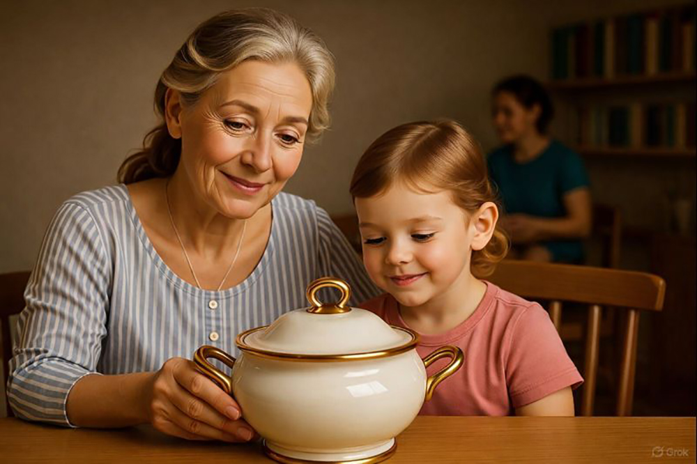 – Що це? – зацікавилася молода дружина. – Це наш сервіз, який тепер завжди стоятиме на видному місці, щоб ним було зручно користуватися. І нічого не заперечуй. Це була найбільша мрія моєї мами.