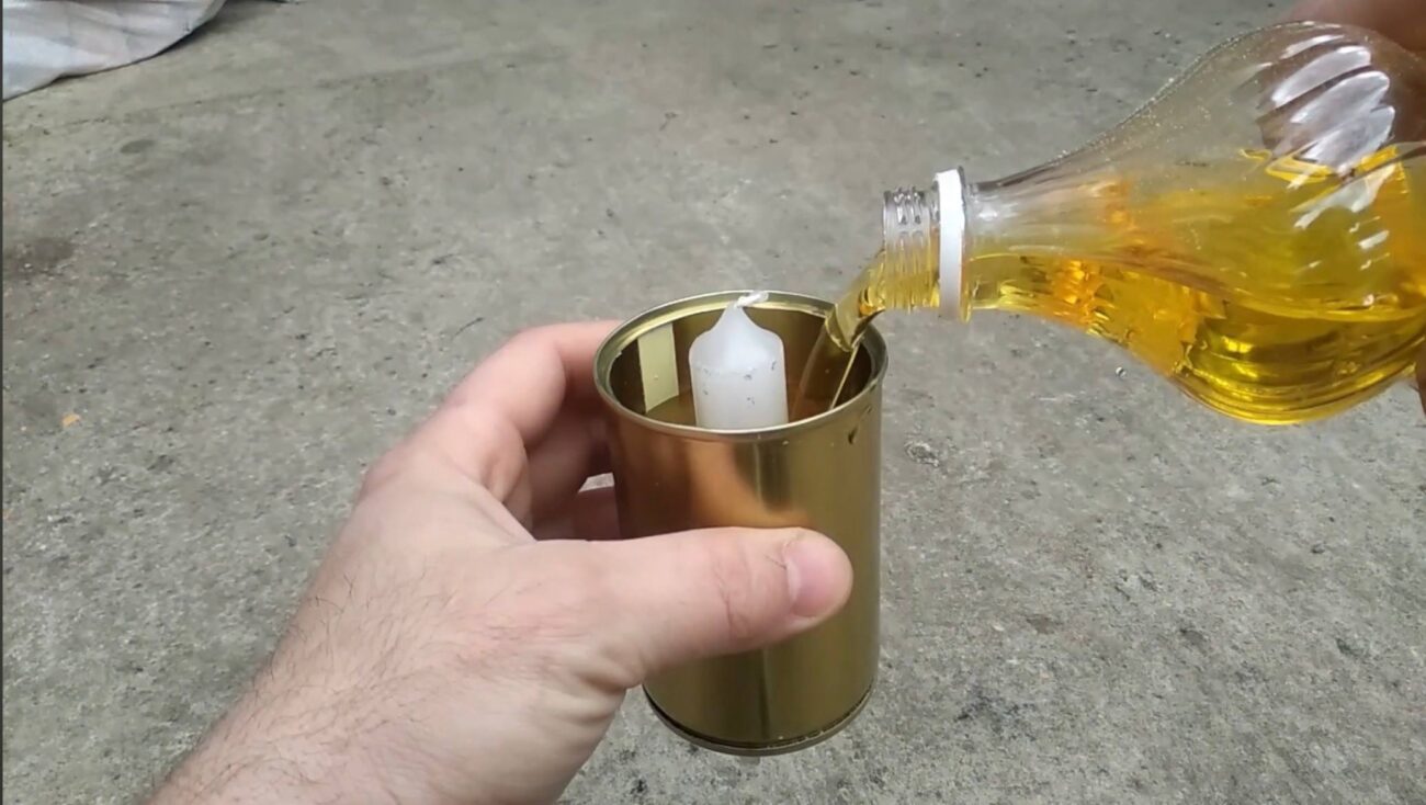Що знадобиться? Для роботи вам знадобляться висока металева консервна банка, парафінова свічка, рослинна олія та металеве відро.