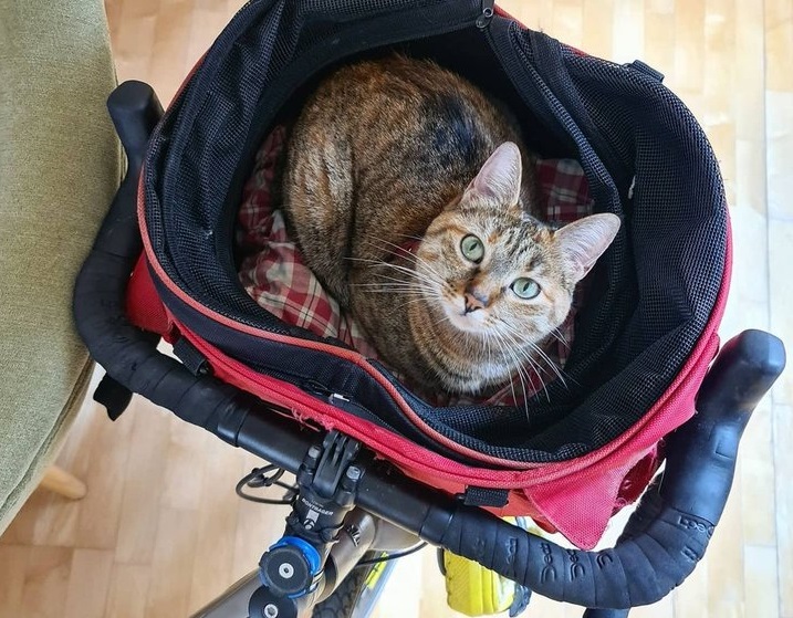 Кішка, що подорожує світом на велосипеді, подолала вже понад 16 тисяч кілометрів