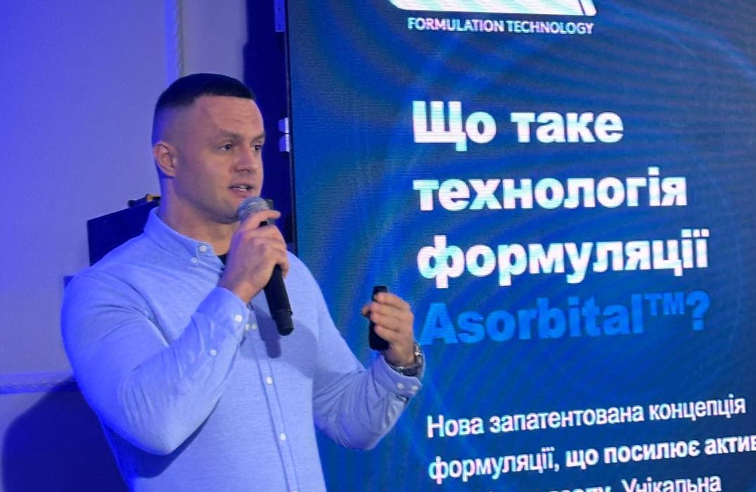 На світлині: про особливості фунгіциду нового покоління МЕГАНІК розповідає менеджер по культурах ТОВ «ADAMA Україна» Олексій Степаненко.