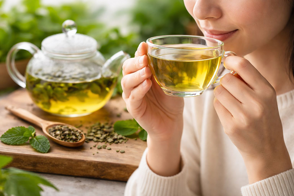 Зелений чай містить катехіни, особливо EGCG, разом з L-теаніном і невеликою кількістю кофеїну. Це поєднання підтримує спокійну концентрацію, ясність розуму та довгострокове здоров'я мозку так, як більшість інших чаїв не роблять.