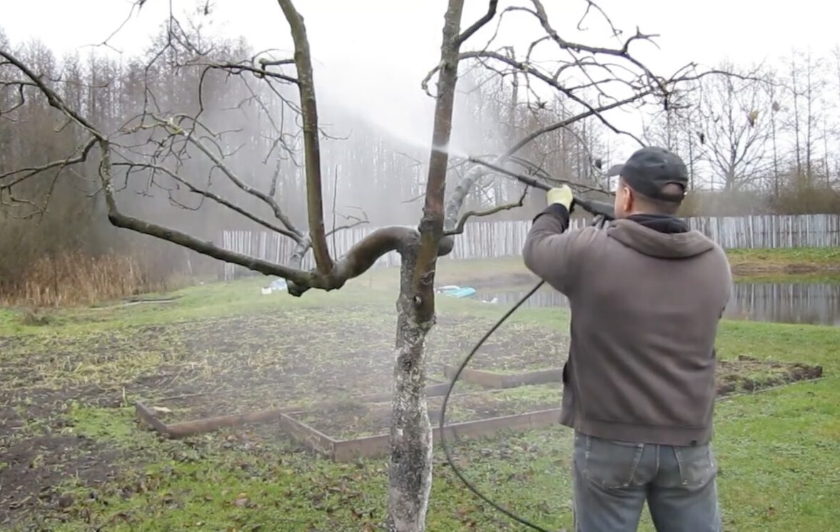 Правильно змішана рідина має ніжно-блакитний колір. Перевірити її якість можна по-народному: опустіть у відро чистий цвях. Якщо на металі не зʼявився рудий наліт, значить, пропорції ідеальні й дерева не отримають опіків. Обробку проводити можна вже зараз (початок березня), до того, як бруньки почнуть набухати й почнеться рух соку.