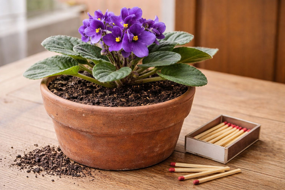 Як захистити фіалку за допомогою сірників