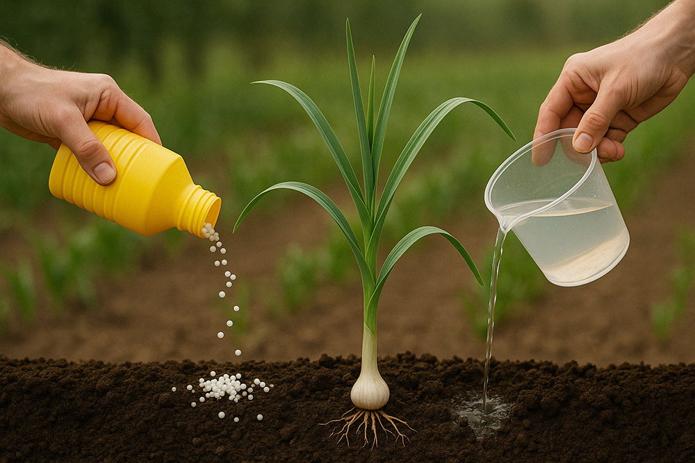 Навесні, коли озимий часник лише починає пробиватися крізь ґрунт, він потребує особливої уваги. Перше ранньовесняне підживлення — критично важливий етап, який визначає не лише колір листя, а й майбутній розмір цибулин.
