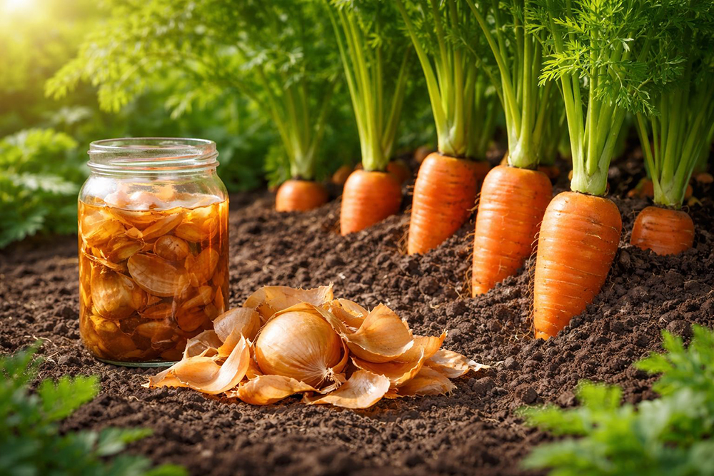 Добриво для моркви можна виготовити вдома. Основою стане лушпиння цибулі. Воно містить важливі елементи (калій, мідь, фосфор, залізо та багато інших), а також вітаміни (Е, С, групи В). Ці речовини сприяють появі великих й солодких коренів моркви.