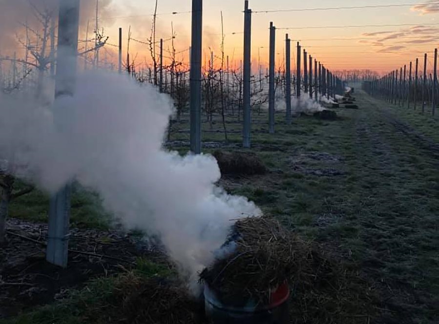 Один з найпростіших, але й найдієвіших способів захисту плодових дерев. Використовувати метод можна і на невеликих ділянках з декількома деревами, і на великих площах саду. У разі загрози поворотних заморозків до -5 градусів слід з вечора набрати кілька куп з гілок, листя, іншого органічного сміття. Немає нічого поганого в тому, якщо органіка буде злегка вологою: це лише посилить димлення купи.
