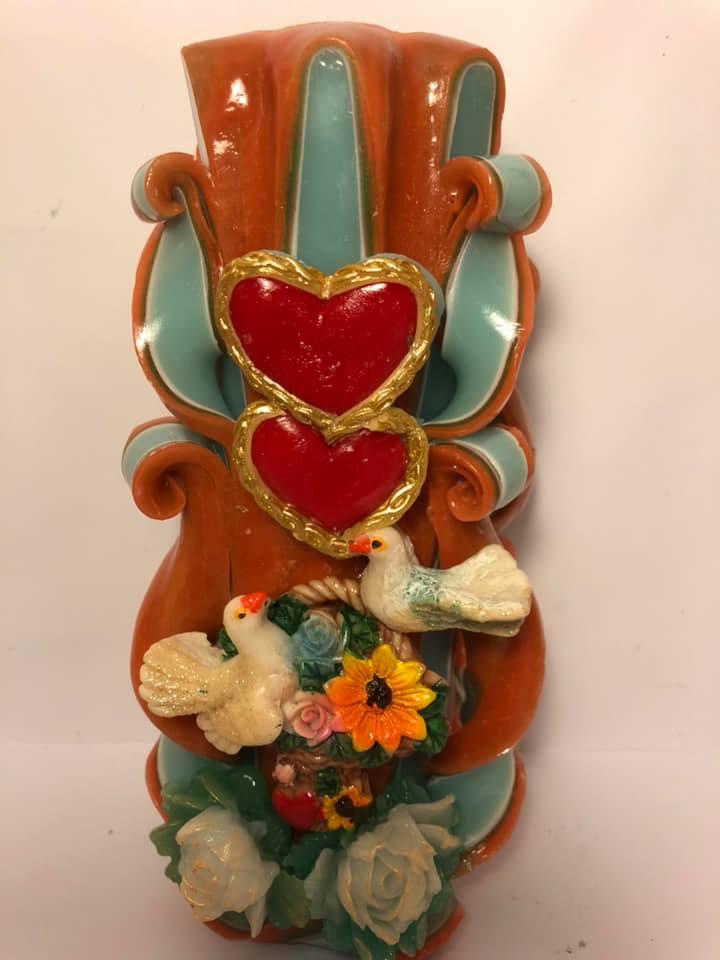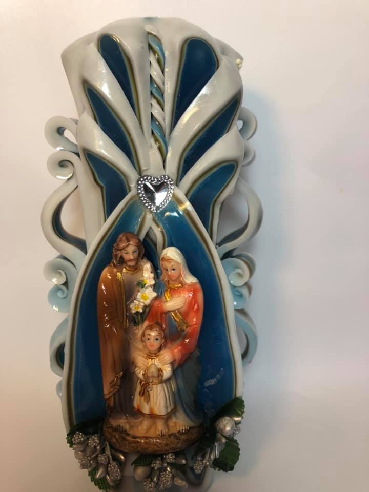 Дивлячись на синю свічку, прикрашену неймовірним букетом, мимоволі думаєш, що палити таку красу – майже святотатство. Але майстриня заперечує: «Свічки створені для того, щоб горіти. Тільки так можна відчути їхню містику. Кажуть, колір полум’я сигналізує про енергетику: синє світло – знак присутності вищих сил, жовте – тепла емоційна енергія».