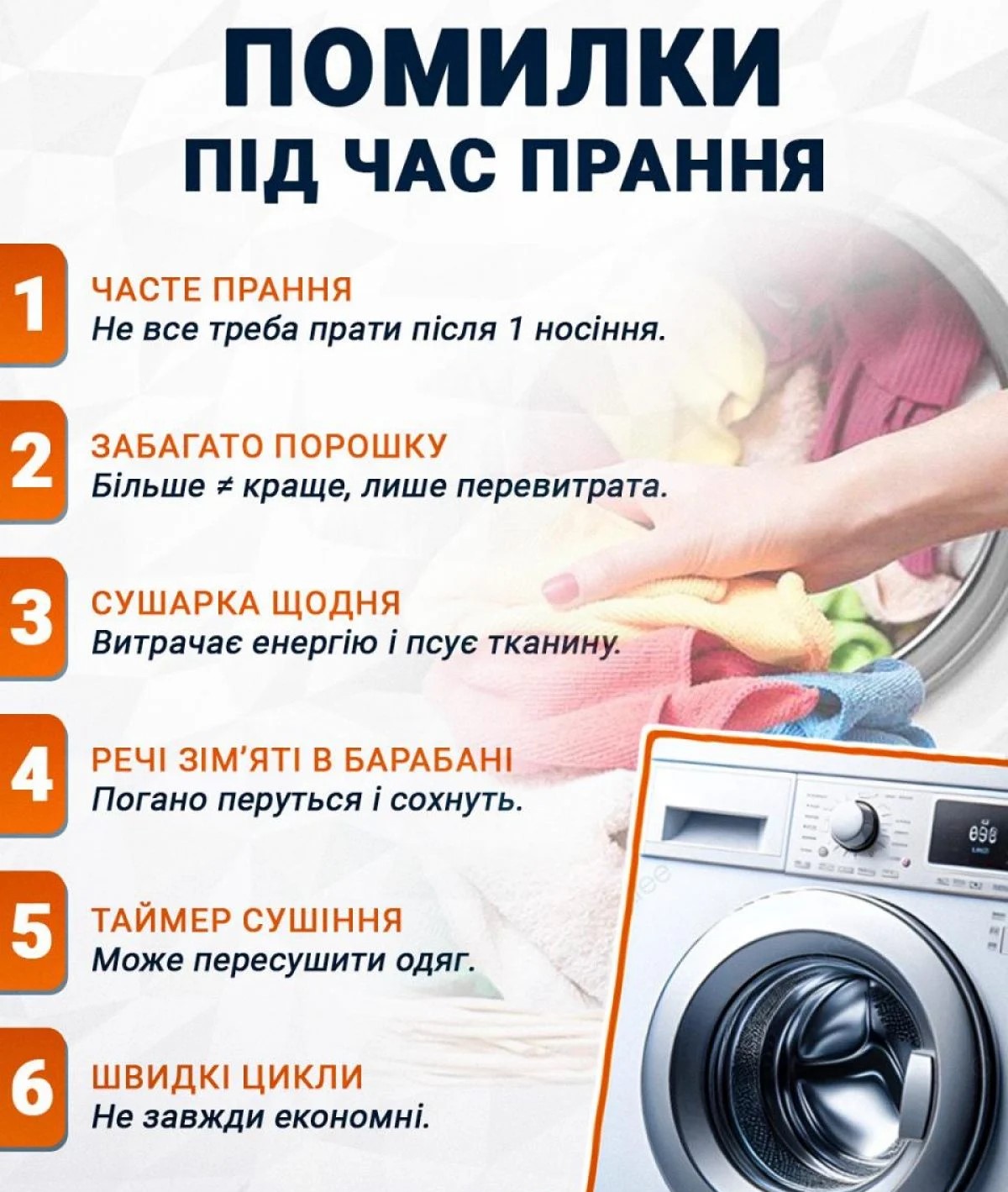 Крім того, надмірна кількість порошку чи гелю створює зайву піну, яка заважає нормальному процесу прання та полоскання. Це створює додаткове навантаження на пральну машину і може скоротити термін служби техніки.